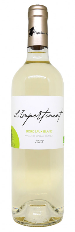 Impertinent Blanc es una mezcla de Sauvignon Blanc (80%) y Sémillon (20%) cultivados en 50 acres en la comuna de Mérignas. La vinificación se realiza en depósitos de acero inoxidable y el vino tiene una crianza de 4 meses sobre lías .