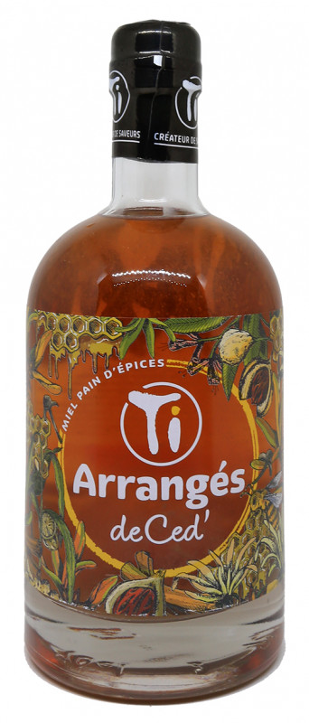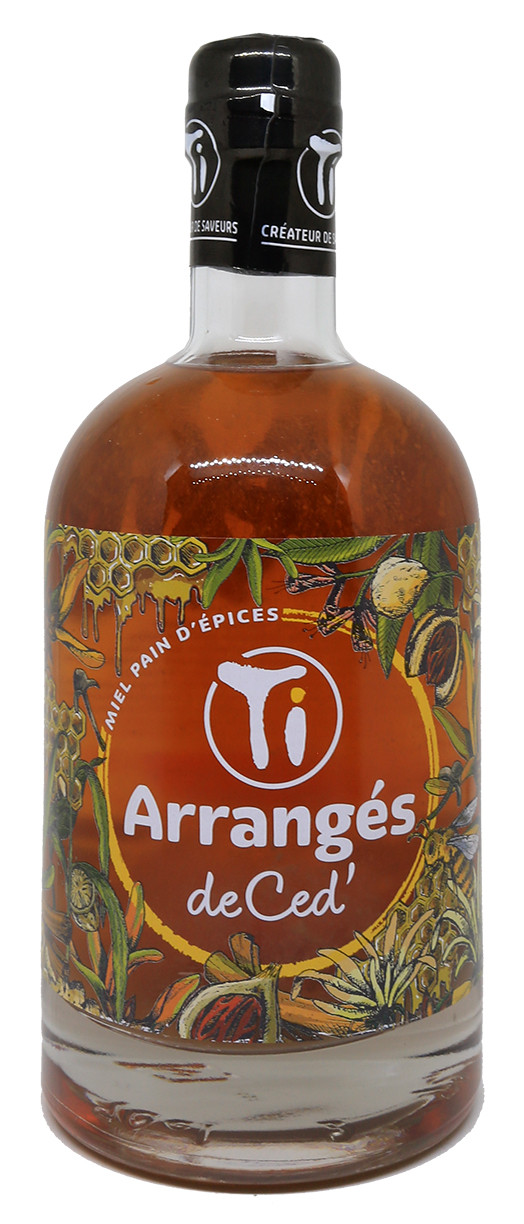 Este ron arreglado Ti Ced' es el resultado de una mezcla de rones agrícolas de las Antillas francesas con miel de castaño recogida de un apicultor en el País del Loira, y a la que se infunde una selección de especias emblemáticas de la receta del pan : anís estrellado, nuez moscada, canela, clavo, jengibre y sirope de azúcar de caña.