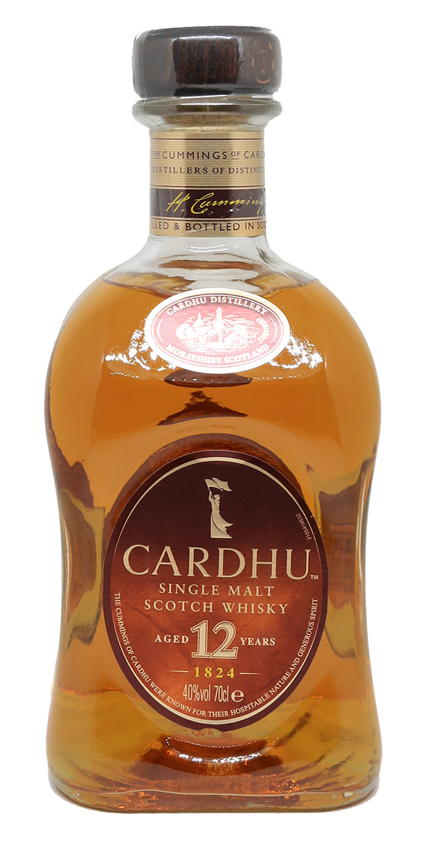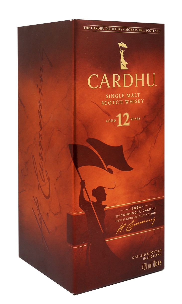 Cardhu ist eine Speyside- Destillerie in der Nähe von Archiestown, Moray, Schottland , die 1824 vom Whiskyschmuggler John Cumming und seiner Frau Helen gegründet wurde. Die Brennerei wurde hauptsächlich von Helen Cumming betrieben, die durch das Fenster ihres Bauernhauses Whiskyflaschen an Passanten verkaufte. Da die Brennerei auf einem Hügel lag, konnte Helen die Polizei kommen sehen. Sie bedeckten sich mit Mehl und sagten, sie würden Brot backen, um den Geruch zu überdecken. Sie bot ihnen dann Tee an und hisste draußen eine Flagge, damit die anderen Brennereien in der Nähe es sehen und schnell entsprechend reagieren konnten. Im Jahr 1885 wurde die Brennerei auf einem neuen Grundstück wiederaufgebaut und die Brennblasen des alten Brennereigebäudes an William Grant verkauft, der die Glenfiddich-Brennerei gründete. Das neue Gebäude und die Brennblasen ermöglichten es Cardhu, die dreifache Menge Whisky herzustellen, die er zuvor produziert hatte. Die Brennerei wird jetzt von Diageo betrieben und der Whisky der Brennerei bildet einen wichtigen Bestandteil der Mischungen von Johnnie Walker. Das Wort „Cardhu“ leitet sich vom gälischen „Carn Dubh“ ab, was „Schwarzer Stein“ bedeutet.