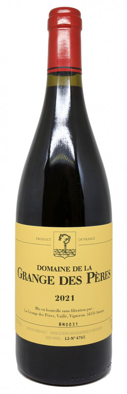 La Grange des Pères Rouge is a blend of Syrah, Mourvèdre, Cabernet Sauvignon and Counoise . The use of Cabernet Sauvignon does not allow it to be classified in the AOC Languedoc, it is therefore under the IGP Pays de l'Hérault classification. The grape varieties are vinified separately, and aged in 228-liter barrels for 24 months . The barrels are then blended, and the wine is then put in vats for a few months before bottling.