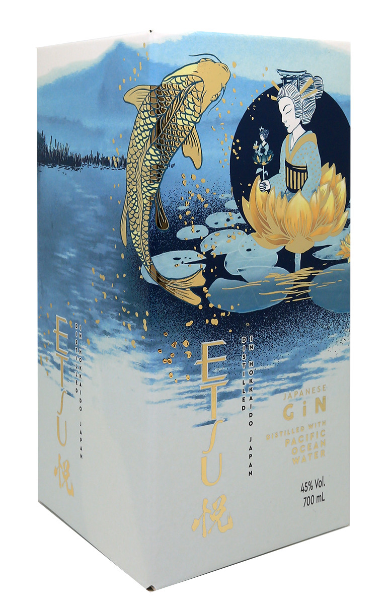 O gin Etsu Pacific Ocean Water é destilado na destilaria Asahikawa, na ilha setentrional de Hokkaido. Destaca-se pelo uso de água retirada das profundezas do Oceano Pacífico durante o processo de destilação. Para mais potência e caráter, este gin é destilado com os botânicos após 22 horas de maceração. Baseia-se em uma mistura única de botânicos japoneses: yuzu, laranja amarga, coentro, zimbro, alcaçuz e angélica. É ideal para degustar em coquetéis ou com tônica.