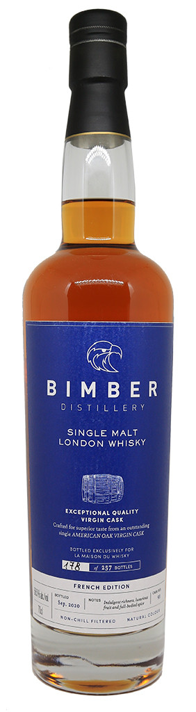 La Distillerie Bimber est située à Londres, en Angleterre. Elle a été fondée par des amateurs de whisky (Ewelina Chruszczyk et Dairusz Plazewski), avec pour mission de produire un Single Malt de haute qualité avec du caractère, en utilisant des méthodes traditionnelles rarement vues aujourd'hui. Toute l'orge est cultivée dans une seule ferme. Il est ensuite traditionnellement malté au sol, écrasé à la main et fermenté lentement pendant sept jours dans des cuves en bois fabriquées à la main dans leur propre tonnellerie. Ils utilisent le feu direct pour chauffer les petits alambics en cuivre, et le spiritueux mûri dans des fûts sélectionnés à la main. Enfin, le whisky est assemblé et mis en bouteille sur place à la distillerie. Les premiers fûts de Bimber ont été remplis le 26 mai 2016 et ont été commercialisés trois ans plus tard, en septembre 2019 - la sortie limitée de 1.000 bouteilles numérotées à la main s’est vendue en 3 heures. Depuis 2020, Bimber lance une gamme plus large de nouveaux whiskies Single Malt.