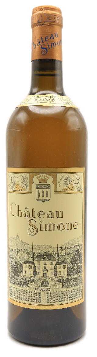 Château Simone Blanc est un assemblage de Clairette (80%), Grenache Blanc (10%), Bourboulenc (5%), Ugni Blanc (3%) et Muscat Blanc (2%). Les vendanges sont effectuées exclusivement à la main, à pleine maturité avec triage des raisins. Les raisins sont légèrement foulés puis pressés. L’élevage dure 18 mois en petits foudres de chêne, dont 6 mois sur lies fines puis 1 an en barriques avant la mise en bouteille.