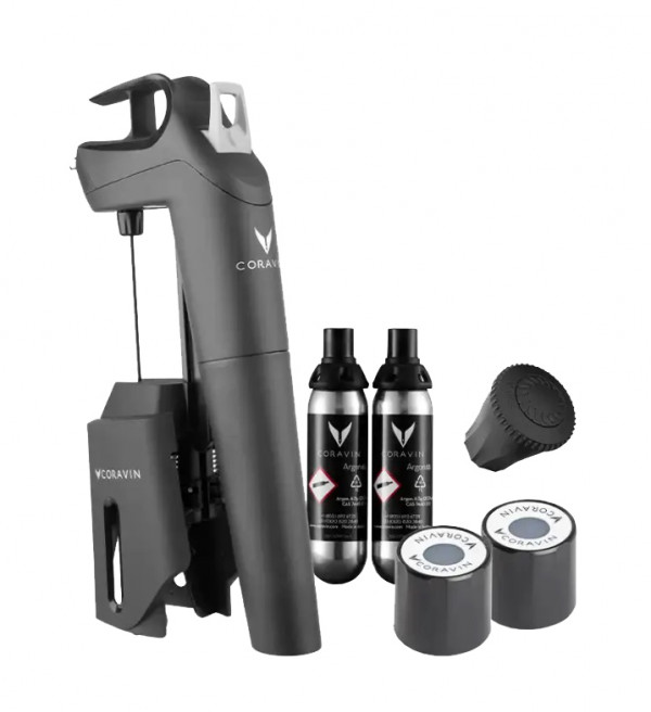 Le système de conservation des vins Coravin Timeless Three+ préserve le vin pendant des mois, voire des années. Il permet de verser du vin sans déboucher la bouteille grâce à l’insertion d’une aiguille dans le bouchon en liège ou aggloméré. Ce coffret contient deux capsules Pure Argon, deux bouchons à vis pour utiliser le système avec des bouteilles à bouchon à vis et un aérateur qui équivaut à 60-90 minutes de décantation.