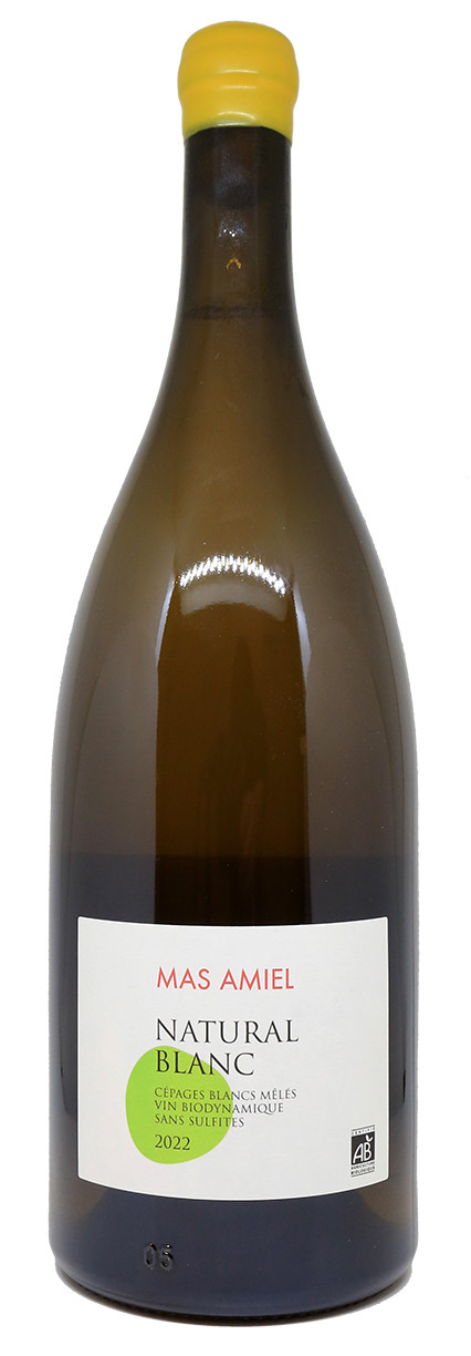 Mas Amiel Natural Blanc fremstilles af flere parceller med Grenache Blanc, Grenache Gris, Maccabeu og Vermentino, dyrket på et kalk-skifer terroir i stedet kaldet La Devèze. Efter manuel høst presses hele klaser direkte, og vinificeringen foregår i små rustfri ståltanke. Vinen lagres i rustfri ståltanke.