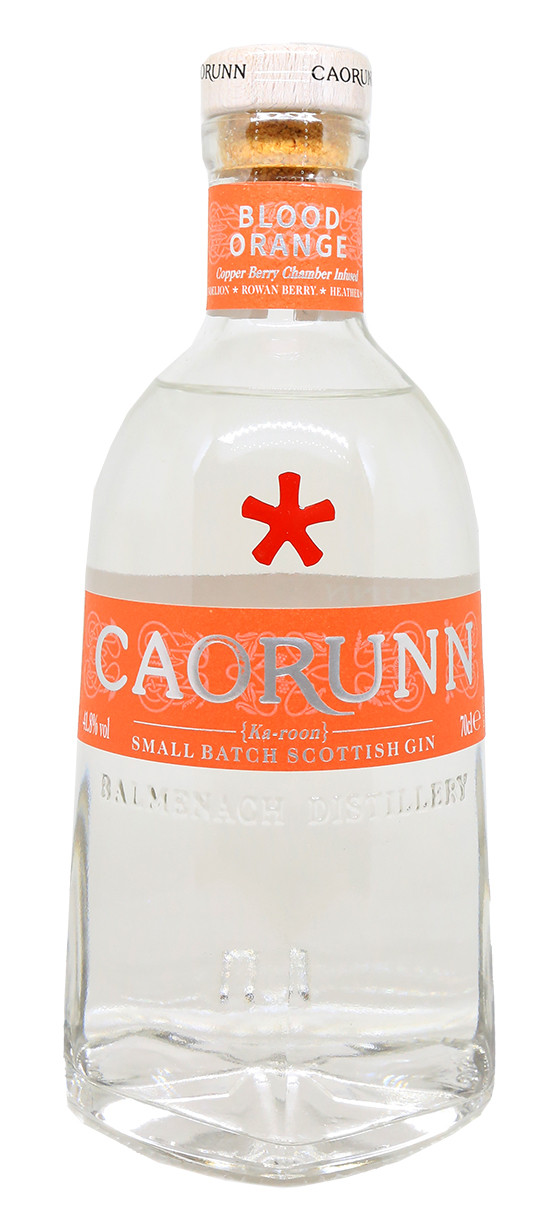 Le Caorunn Blood Orange est fabriqué artisanalement en infusant 5 plantes celtiques récoltées localement et 6 plantes de gin traditionnel dans leur « Copper Berry Chamber » ; un alambic en cuivre qui élimine le soufre et les composés indésirables. Il est enrichi par l’ajout d'infusion d'orange sanguine et de piment.