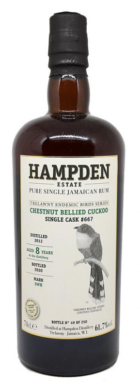 Ce Hampden âgé de 8 ans fait partie de la série Trelawny Endemic Birds, les premiers single casks bruts de fût embouteillés par Hampden Distillery. Ce rhum provient du Cask #667, étiqueté OWH, ce qui signifie que les niveaux d'ester sont compris entre 40 et 80 grammes par hectolitres. Il a été initialement sélectionné comme embouteillage pour le Whisky Live Paris qui devait avoir lieu en septembre 2020, et annulé en raison de la crise de Covid-19.