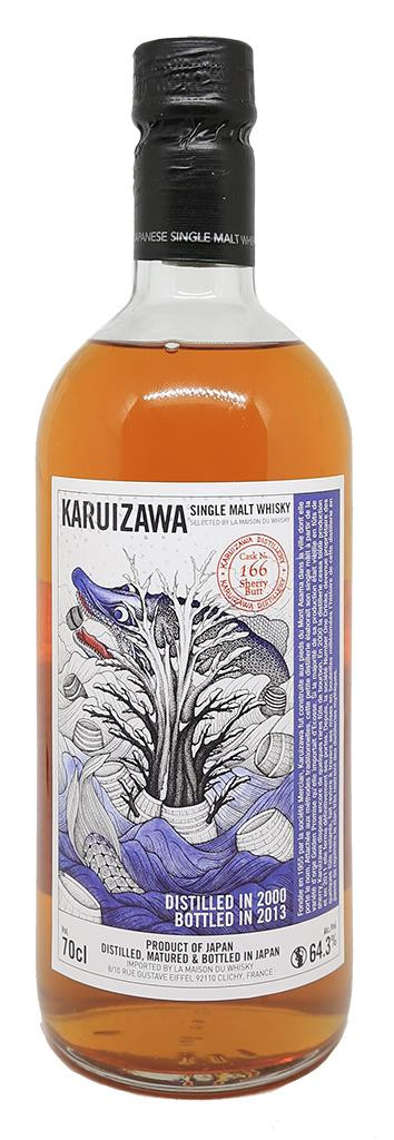 Cette expression sélectionnée pour La Maison du Whisky a été l’une des dernières à être distillé par Karuizawa en 2000. C’est un Single Cask (#166) provenant d’un Sherry butt (480-520 litres). Le Single Malt a été embouteillé en 2013.