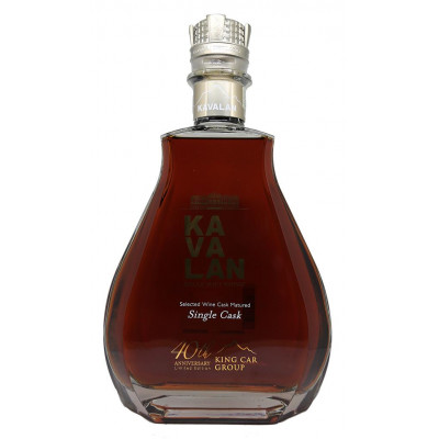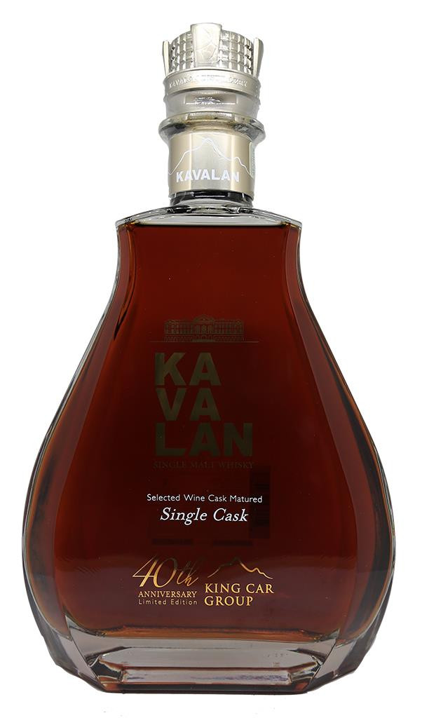 King Car 40th Anniversary es el último lanzamiento en 2020 de Kavalan Distillery. El whisky se destiló en 2012, se añejó en un barril de vino tinto muy raro y se embotelló en 2020. Este magnum viene en una caja de madera y cuero con un cristal de Swarovski grabado . El tapón de whisky también fue diseñado por Swarovski.