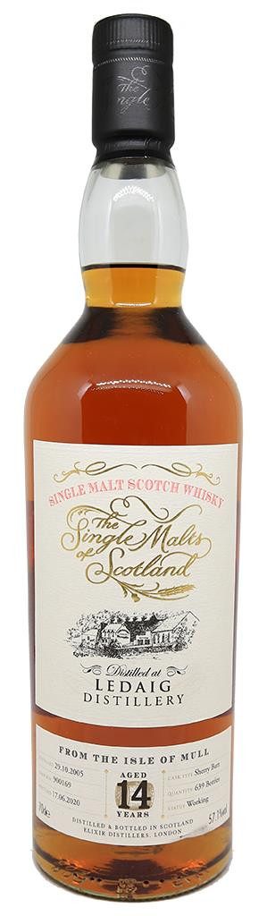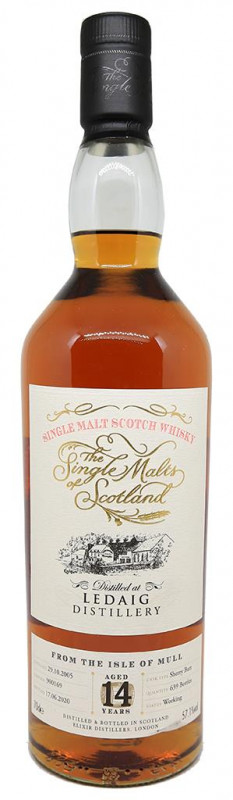 Cette édition limitée à 618 bouteilles a été embouteillée par Elixir Distillers, un embouteilleur indépendant anglais, pour la gamme “Single Malts of Scotland”. Le whisky tourbé de Ledaig a été distillé en 2005 puis vieilli 14 ans en fûts de Sherry.