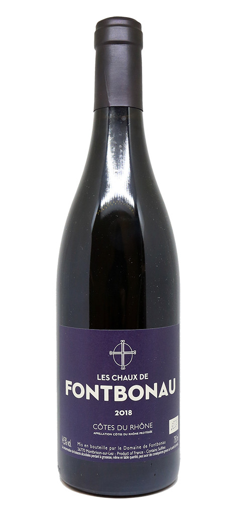 Les Chaux de Fontbonau est un assemblage de Grenache (85%) et Syrah (15%). Après la récolte mnauelle, les raisins sont mis en macération pré-fermentaire pendant 2 à 3 jours. La cuvaison dure 4 à 5 semaines avec des pigeages manuels pour une extraction douce. Le vin de presse est ajouté au vin de goutte, puis le vin est élevé de 10 à 12 mois en barriques de chêne d’exception d’un vin sélectionné par un château proche du domaine situé à Pauillac, et en cuve inox(20%).