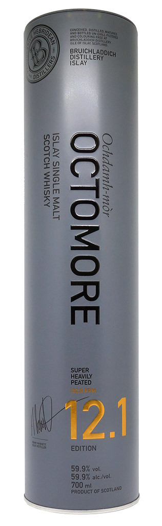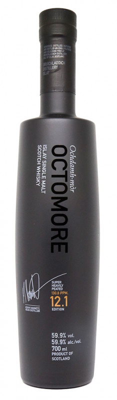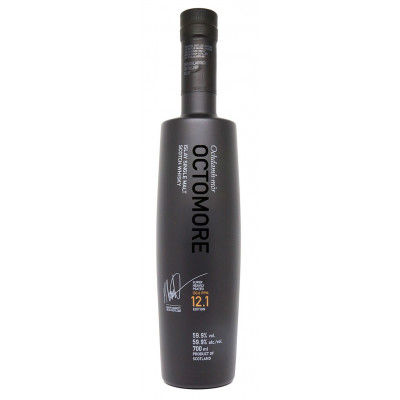 Octomore 12.1 a été distillé en 2015 à partir de la récolte 2014 d'orge écossais Concerto. Il a été élevé pendant 5 ans dans des fûts de whiskey américain de premier remplissage.