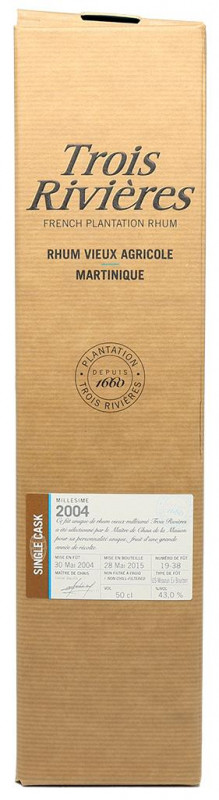 TROIS RIVIERES - Rhum hors d'âge - Single Cask - Millésime 2004 - Fût 19-38- 43%
