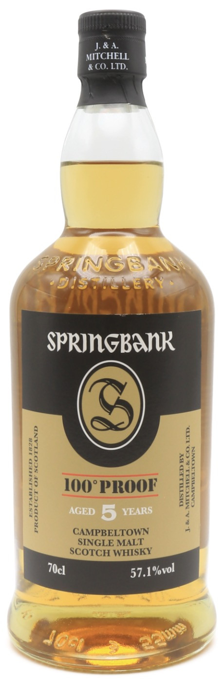 Distillé, vieilli et embouteillé à Campbeltown, ce 5 ans 100 Proof est un single malt non filtré à froid et sans colorant, embouteillé brut de fût à 57,1 %, dans la plus pure tradition de la maison. Malgré sa jeunesse, il impressionne par sa densité et sa complexité. Vieilli en fûts de bourbon et de sherry soigneusement sélectionnés, il combine la franchise du distillat Springbank : huileux, légèrement tourbé et minéral avec la richesse gourmande du bois. L’influence maritime du vieillissement en bord de mer vient sculpter un équilibre unique entre puissance et fraîcheur.