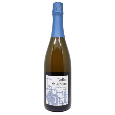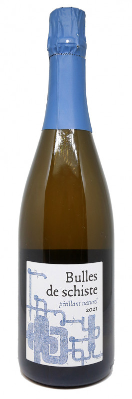 Bulles de Schiste est un pétillant naturel issu de l’assemblage de Chardonnay (65%), Cabernet Franc (30%) et Chenin Blanc (5%) cultivés sur un terroir de schistes de l’Anjou Noir. Il est élaboré selon la méthode ancestrale ; la fermentation se produit dans la bouteille. Il contient 6,7 g/L de sucres résiduels.