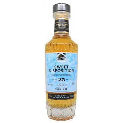 Sweet Disposition a été distillé en 1996 par Glen Keith Distillery. Glen Keith est une distillerie située dans le Speyside en Ecosse. Ce Single Malt Whisky a été vieilli pendant 25 ans et seulement 492 bouteilles ont été produites.